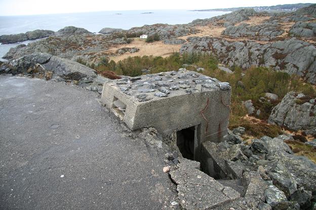 Kan noen hjelpe meg med å identifisere disse konstruksjonene?Den ene har jeg kalt "MG stilling".Åpningen er ca 1 m i diameter med bunker under.Den andre har jeg pretensiøst kalt FLAK-tårn".Det er ca.4,5 m høyt,veggene er over 1 m tykke og taket ennu tykkere.Innvendig er taket buet,men toppen er flat,med 1 m høy kant rundt.Kan ikke finne noen rimelig grunn til å bygge noe annet midt ute på en liten slette når det er så mye fjell rundt omkring.Bildet av MG bunkeren er ikke spes.godt,men jeg håper det kan tydes.