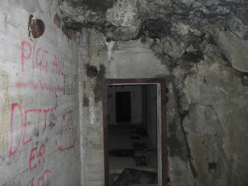 Den ene er mannskapsbunker 315K, ca 10 meter langt rom med to innganger. Her står det at tunnelen er sprengt ut pr. 13/11-1943 men veldig fuktig.