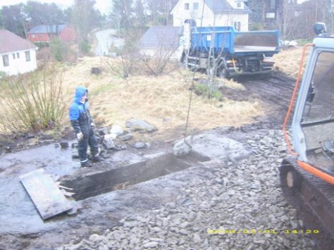 Kan legge til at det også har blitt jobbet litt idag med og renske dreneringer og planlegge sikrings arbeid.