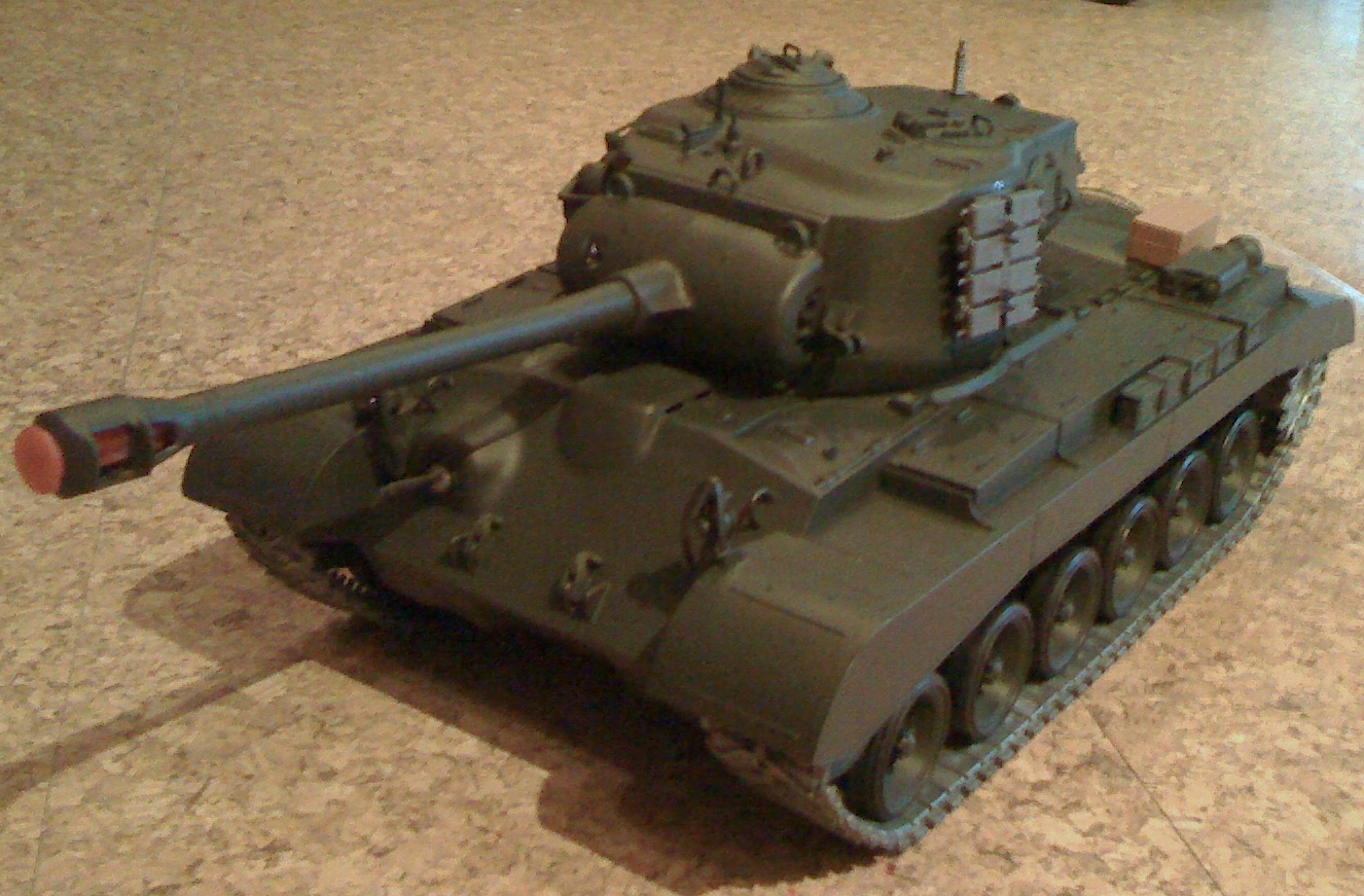 Den tidligere stridsvognen, en modell av M26 Pershing, hadde en del funksjoner Tamiya-versjonen fra 80-tallet ikke har, så som lys, motorlyd, røykgenerator, "kraftige" motorer, metallbelter og en softgun. Problemet er jo bare at ingen av disse tingene fungerte etter noen minutters bruk. I tillegg var den ferdigbygget — og byggingen er jo ofte vel så kjekt som selve kjøringen.