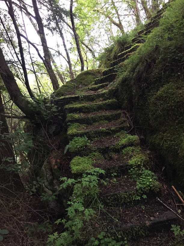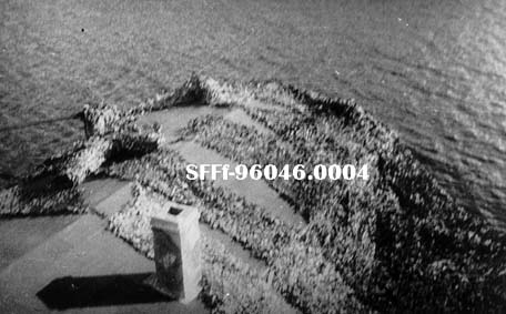 - Denne forsterkinga av vest-veggen er eg usikker på om er etterkrigs eller ikkje. Den er iallefall påstøpt etter resten av bygget. Originalt var det tynn betongvegg og to vindu mot vest, ergo mot fienden, så ein meir solid vegg på denne sida var naturlig.
