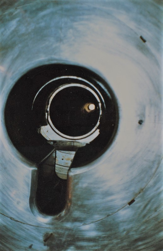 - Bilde fra slutten av 80-tallet. Her er to av de tre av casemate'ene iferd med å synke ned i leiren i den kunstige innsjøen som ble anlagt der, når masser av jord, leire osv. ble fjernet for å lage veiforbindelse mellom Frankrike & England.