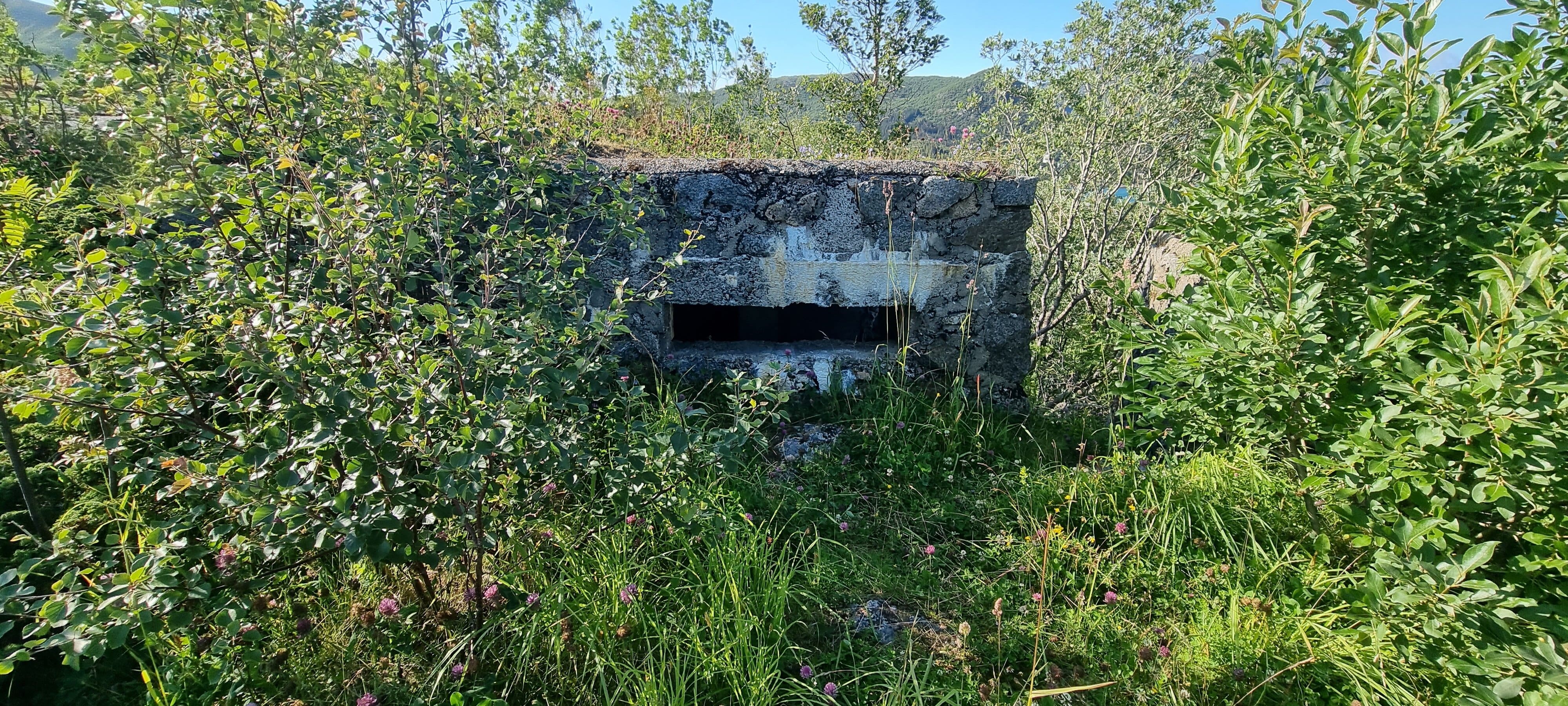 Rishaugen heter det, og navnet er dekkende. Det er svært mye krattskog her, og vanskelig å se noe som helst egentlig. Det skal være et fjellanlegg her også, det fant jeg ikke. Kommandobunker tror jeg ikke de hadde satt opp. "Modus" ser ut til å være det samme, det er fokus på å få skytset opp i stillingene, og så lage det som trengs av øvrig infrastruktur etterpå. (Men det rakk de aldri). Jeg var også på HKB 36/971 Ramberg og MKB 2/514 Olnilsøen, og det ser ut som mye av den samme "malen" er brukt for alle batteriene. Bildene er tatt av meg i juli/august 2021, og jeg kommer til å legge ut noen fra Ramberg også.