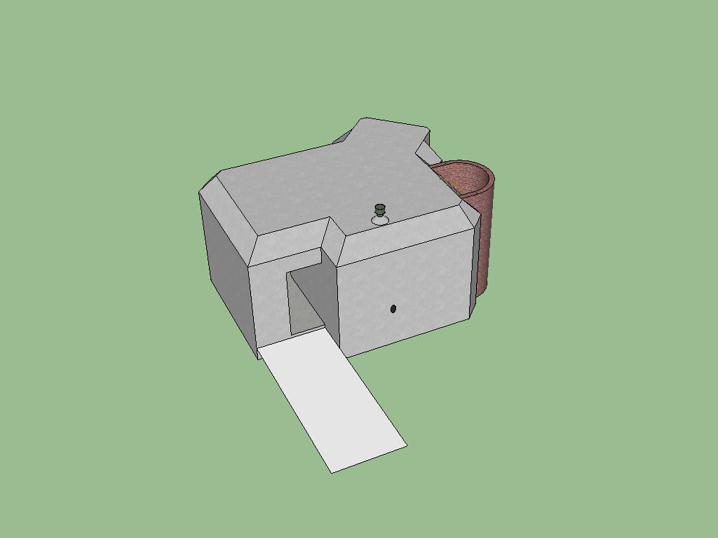 Første skritt er å putte alt jeg har laget i en gruppe slik at dette ikke endres ufrivillig av det vi gjør på terrenget. Har også laget ett eget layer med Terrain og satt det aktivt (dvs at vi tegner havner i dette layer) Har valgt en enkelt Vf bunker ribbet for innhold for å få ned filstørrelsen. En OP bunker pleier å ligge høyt for eksempel på en ås rygg. Utgangpunktet for terrenget kan derfor være 10cm under spalteåpningen som ett utgangspunkt. Jeg pleier deretter å bruke linjaler for å bestemme plassering og utstrekning. Først alle sider i samme høyde som blir 2,1m fra nedkant på betongen. Deretter utstrekning, jeg bruker normalt 15 meter. Bruker deretter sandbox verktøyet ”from scratch” nede i høyre hjørne kan man da sette ”Grid Spaceing” som gir rutestørrelse, jeg bruker oftest 1meter. Deretter drar man ut terrenget fra kryssningspunktene til linjalene, først den ene retningen så den andre. Terrenget puttes automatisk i en egen gruppe og linjalene har nå gjort jobben og kan slettes ”Edit – Delete Guides”. Det blir fort en del feil når man lager terreng så lagre nye utgaver ofte. Nå er ett godt tidspunkt Fil Vf6a-01 Skal man ha andre elementer i terrenget er nå er bra tidspunkt å fastslå dette. Det kan være stier, veier, utsprengte områder og støttemurer. I denne sammenheng velger jeg det enkleste å satser på en flat vei fra inngangen og tegner denne nå. Hensikten er bare å lage en flate som terrenget kan bryte. Når flaten er tegnet putter vi den i en egen gruppe ”double click” velger alt og høyre mus tast ”make group”. Blir den for liten får vi justere størrelsen etter hvert. Nå kan vi begynne å forme terrenget. Man begynner med hoved dragene først og tar mindre justeringer etterpå. Målsettingen er en åsrygg som går parallelt med spalteåpningen. Man åpner først terreng gruppen for endring og velger ”Smoove” verktøy fra Sandbox knapperaden. Man kan nå sette radius nede i høyre hjørne, Begynn med hovedtrekk med stor radius for eksempel 8 meter. Dette krever litt teknikk da ingen deler av terrenget skal være valgt men skal være tilgjengelig for endring. Er en del valgt får man bare gule punkter rundt valgt del. Bruk så justeringer hver gang slik at man gradvis får bygget opp det terrenget man ønsker. Deretter går man ned til mindre diameter og fikser detaljer rundt bunkeren. Jeg lagret når arbeid med 8m diameter var ferdig. Fordelen med å bunkeren nå i Layer0 er at vi lett kan skru den av og på for å komme til terrenget under fil Vf6a-02 Det er vanskelig å få det pent ved spalteåpning. En mulighet er å velge de nærmeste rutene og deretter Sandbox verkøyet ”Add detail”. På den måten deles rutene i to og man får flere muligheter. Lagre ofte, bruk angre og foreta små justeringer av gangen. Ideelt sett bør man få terrenget vekk fra alle åpninger for å unngå å måtte foreta korrigeringer manuelt etterpå. Pass også på at alle flater som skal skjære gjennom terrenget stikker ut på alle sider slik at det ikke blir hull. Når man anser seg ferdig med terrenget er det tid for å tenke på texture. Alle felt som skal ha annen texture må være skilt med en linje (synlig eller usynlig). For å kunne få til litt bart fjell på toppen har jeg her lagt inn to flater. En annen muliget er sandbox ”drape” funksjonen som projiserer ett objekt ned på terrenget for eksempel en sti eller vei. Se også på stamp funksjonen som laget ett avtrykk. Den kan også være skrå slik at man kan lage en rampe ned til bunkeren. Fil Vf6a-03 Nå er det magien kan begynne
