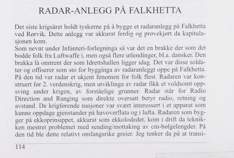 Der har vi en mye bedre kandidat for standplass til Freya.Natter wrote:Det er et par objekter som kan se ut som steinringer (ca 5m diameter) på "Litl-Falkhetto" lenger vest. På Breidablikk står et kamuflasjemalt bygg, evt kan jo radaren evt ha stått på Stor-Falkhetto hvor den nåværende installasjonen er plassert...