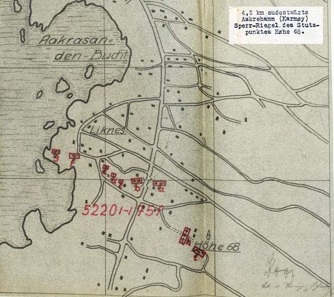 Med referanse til Minekart fra Haugalandet ser det ut som det er "Stützpunkt Höhe 68" vi har funnet her. Kan dette hjelpe oss nærmere svar på våpenspørsmålet i forrige post ?