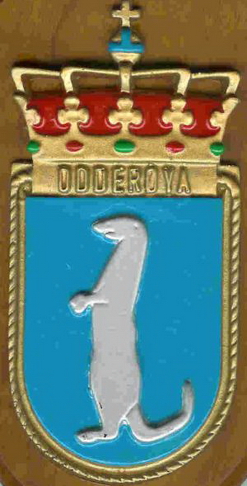 Kresten til Odderøya fort: "Oppreist sølv oter i blått"