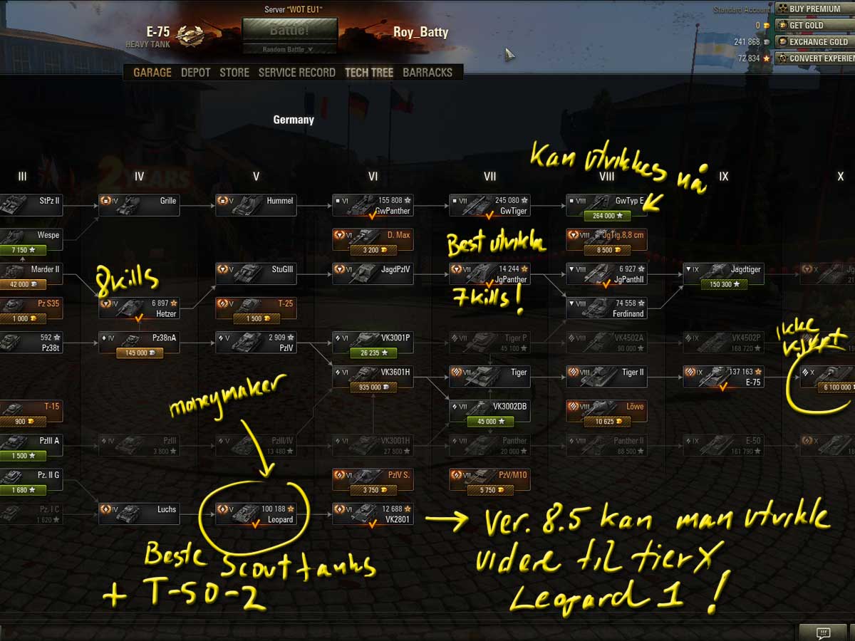 Spiller nå med PzKpfw III Ausf. A med 5 cm KwK 38 L/42, og Marder II med 7,6 cm PaK 36 (r). Er passe greit tier å være på til det er riktig tid å gå opp noen hakk med f.eks PzKpfw III/IV eller PzKpfw V Panther.