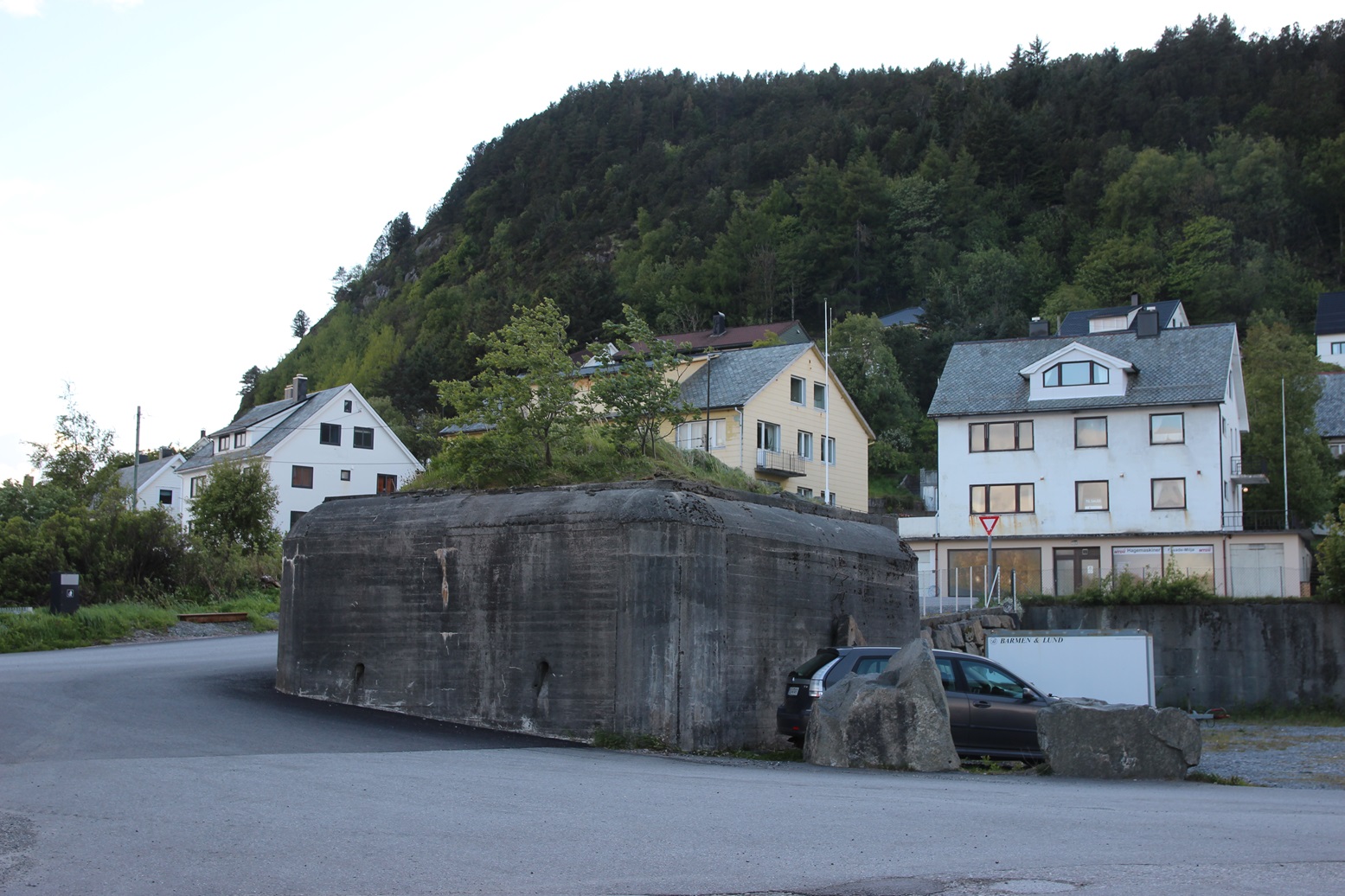 Bunkeren rett under brua, venstre side av veien.