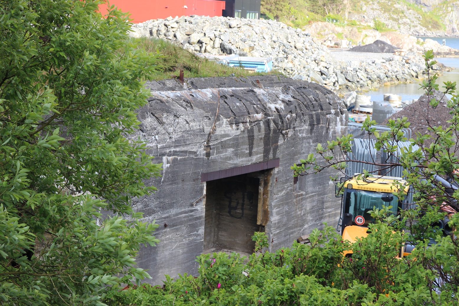 Bunkeren på høyre hånd, nedenfor brua.