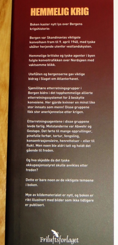 "Hemmelig Krig 1939-1945 - Bergen og slaget om Atlanterhavet" (Per Helge Martinsen, 2016. ISBN 978-82-91-49558-3 )