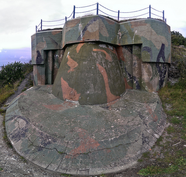 Hvis den bare er murt igjen for å stenges, hvorfor er det en såpass avansert kjegleform på betongen? Ettersom den er kamuflasjemalt, har den vel hatt en militær funksjon med betongkjeglen også? (Eller kamuflasje av landskapsvernhensyn?)