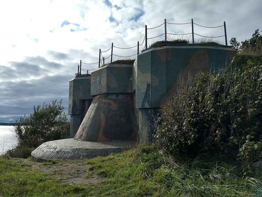 Jeg var på ny tur til Tangen fort i går, denne gangen blåste jeg ikke bort og benyttet anledningen til å ta turen helt syd på Langesundtangen for å ta bilder av bunkeren for M76 lyskaster som ligger nedenfor kommandobunkeren og de to kanonkasemattene også:
