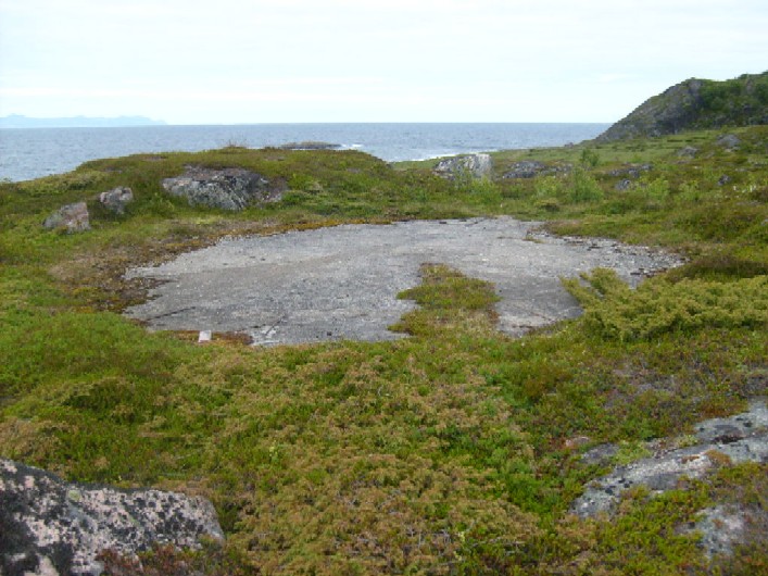 Vidre en rund betongplatting ,helt flat,uten murer eller jern på.Oppstilling for lyskaster? Ligger en liten bunker like ved (bilde)Men den store lyskasterstillingen ligger bare ca.300 m. unna.