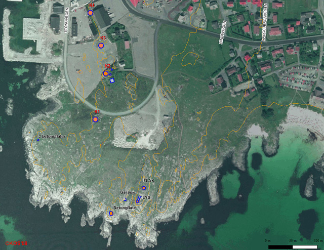 (Bunkeren som er under "langtids-rivning" er ikke inntegnet)