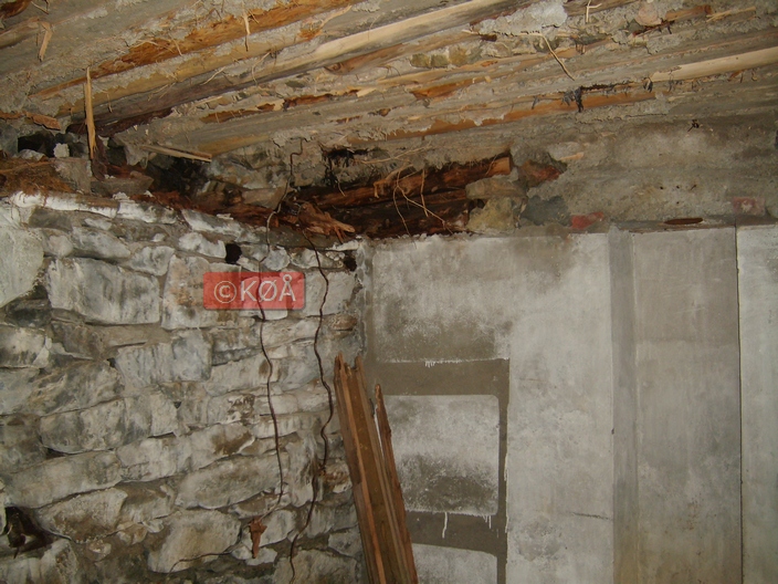 - Stilling med støpt trekantfundament. Er ganske mosegrodd så vanskelig å sjå konturane.