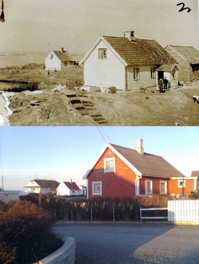 Jeg har lagt "før og nå" av de. Usikker på om de skal i en annen kategori, men de kan jo flyttes. Vel - kameraet gikk selvsagt tom for strøm - så jeg måtte bruke mobilen på de siste. Det siste av mine to bilder her er ikke helt perfekt, men jeg måtte inn i en hage på en 1,5 meters knaus for å stå samme sted som fotografen - og det gjorde jeg ikke.