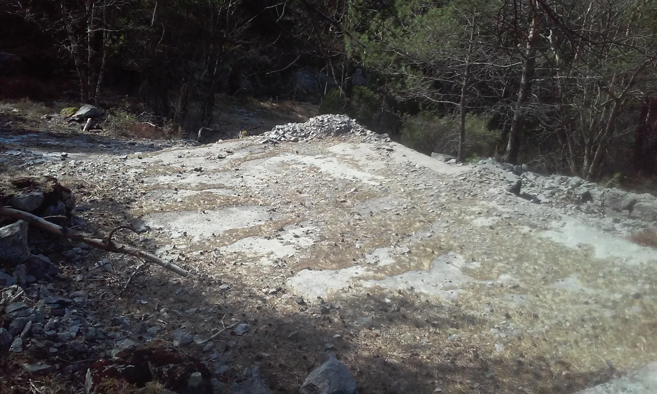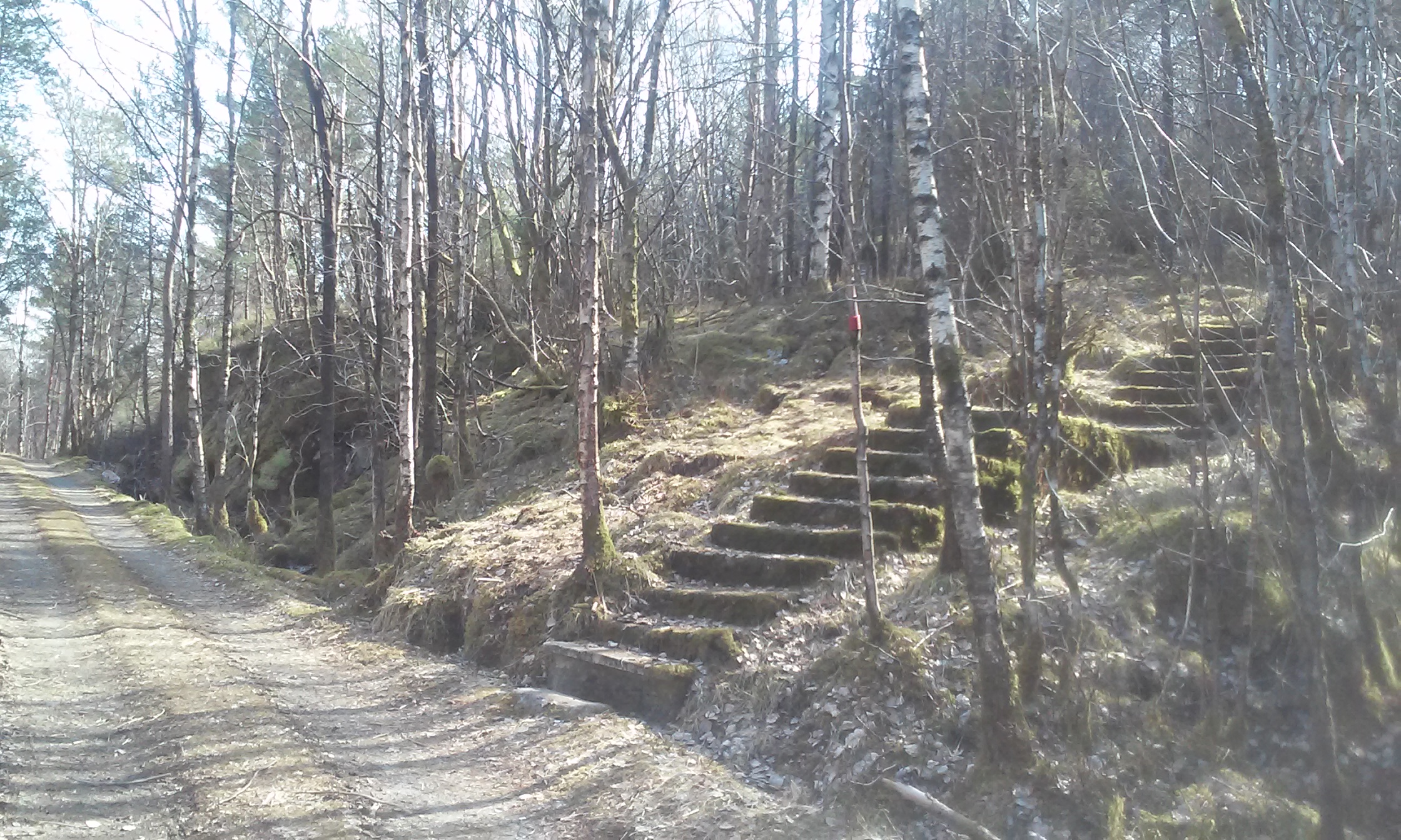 Rota først rundt på nedsiden av veien uten særlig hell, kryssa så veien og fant bare stilling 1 og noen garasjer(?) i skogen.