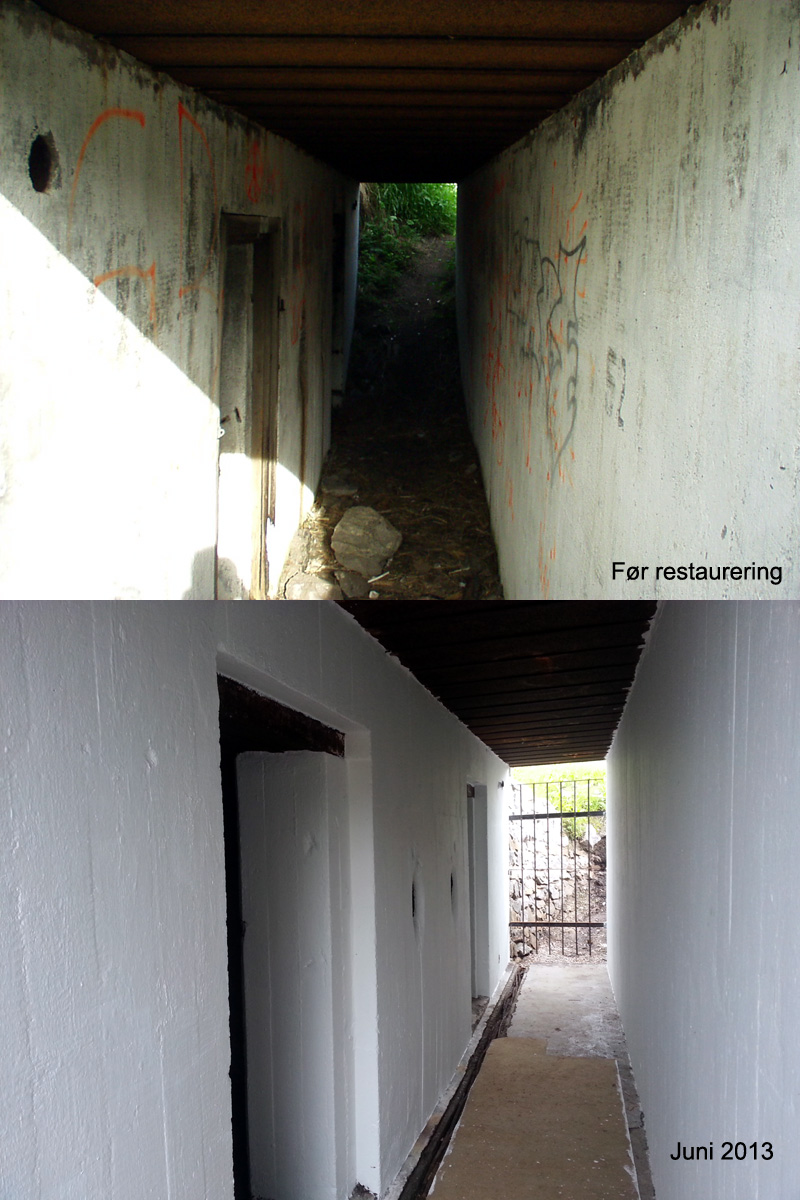 Bildet under viser hvordan det så ut i gangen før restaurering startet og hvordan det ser ut i dag.