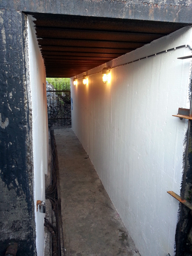 Har dere tenkt å legge treplater over kabelgangene? Jeg finner ikke noen bilder igjen av det her og nå, men brukte ikke tyskerne også noen støpte plater med hull i? Hullene var plassert midt på platen slik at man kunne vippe den opp med en stang.