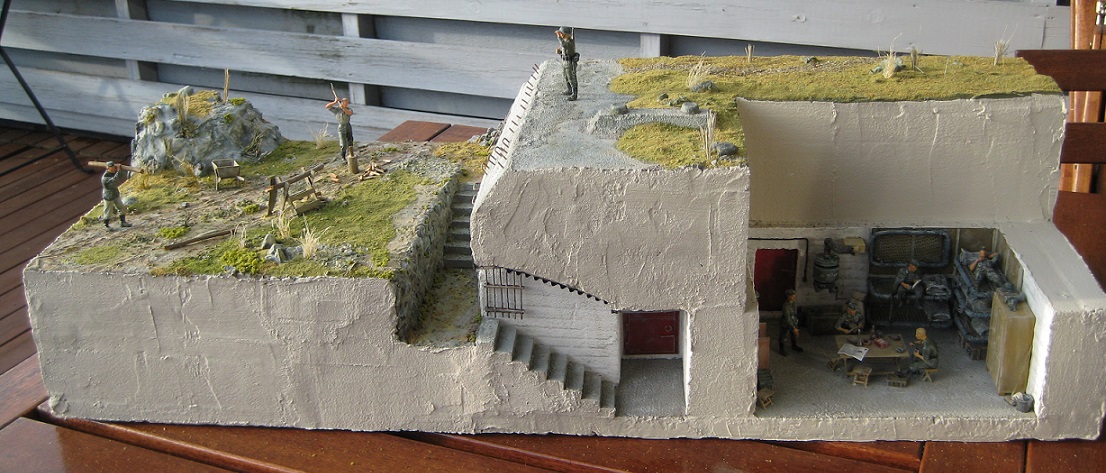 Etter en lengre byggeperiode enn planlagt er endelig bunkeren ferdigstilt. Den er bygget i 1:35 skala og viser hverdagslivet i en bunker.