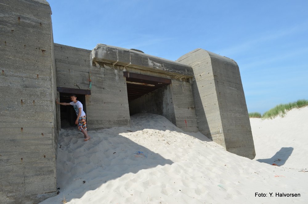 Et enormt stort fort men mange bunkere, noen sklir ut i sanden og tipper. Info om området tas gjerne i mot