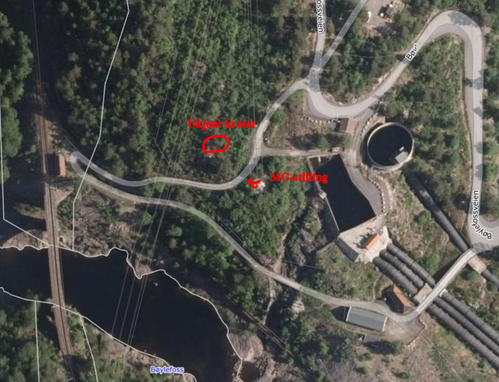 Noen flere korreksjoner til artikkelen. Kom over en feltmessig MG-stilling sprengt ut i fjellet og forsterket med opplødd stein i nærheten av jernbanebroen på Bøylefoss. I tillegg er det er et større krater i nærheten, det er en mulighet for at krateret har bakgrunn i oppryddingen av minefeltet etter krigen.