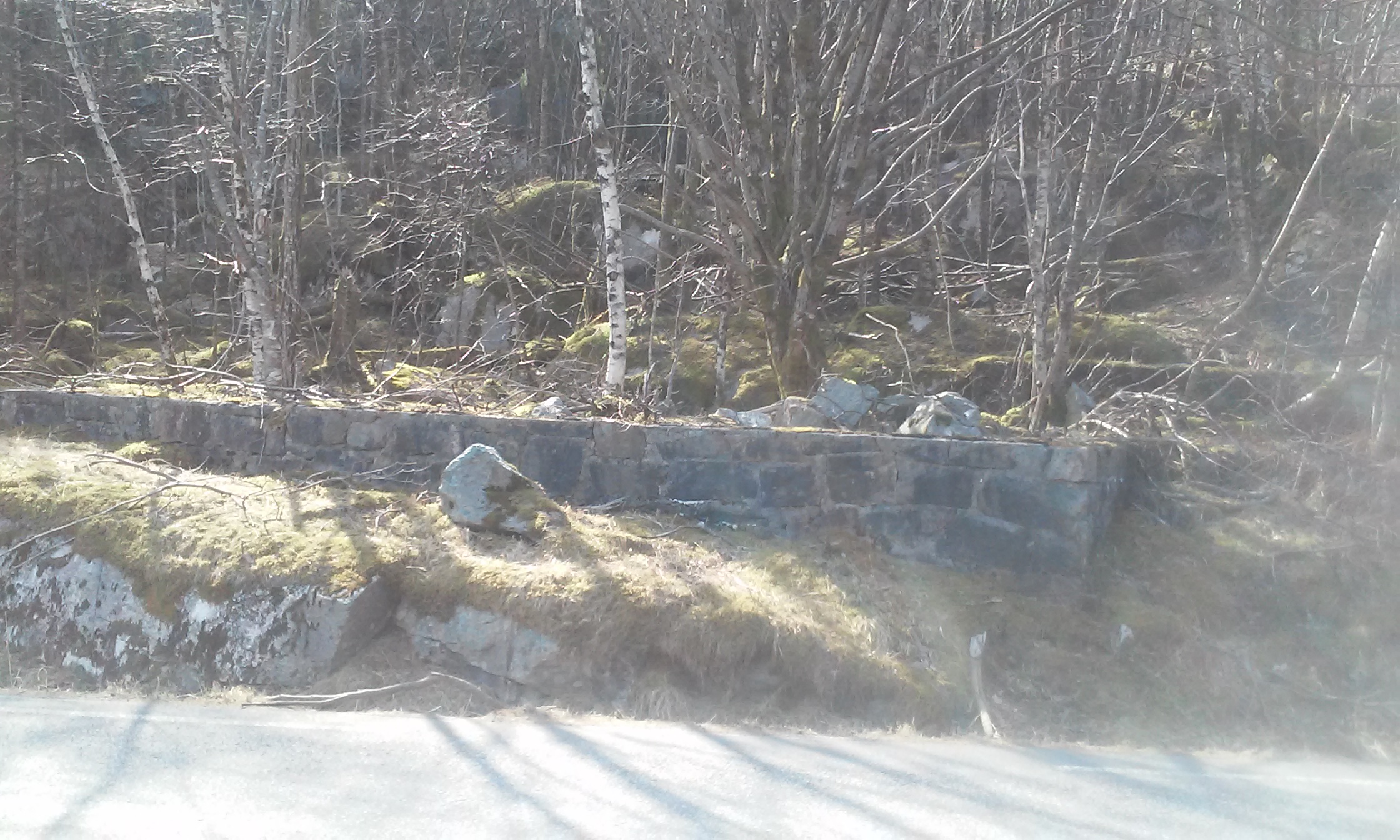 - På anleggsveien(?) rett ovenfor finner man denne ved restene av en port/grind