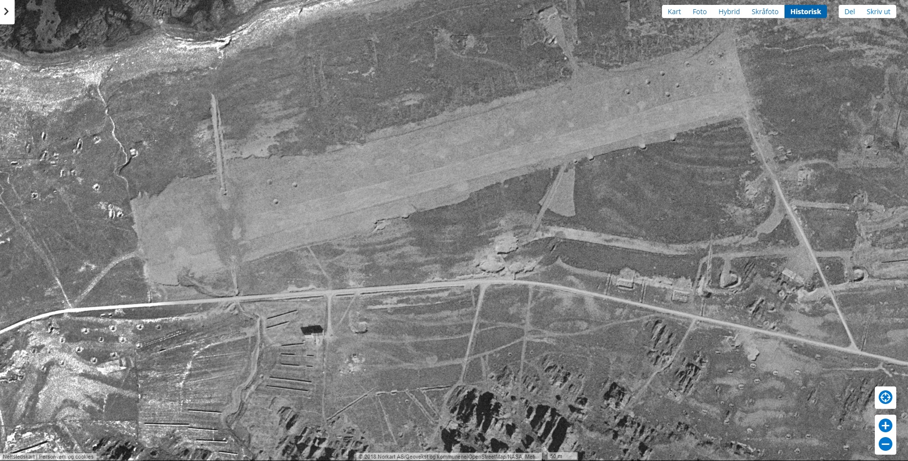 Berlevåg flyplass i 1970, fortsatt synlige spor av bombing og ser også grusbanen som Varangerfly var med og utbedret. Tyskerne hadde tømmerrullebane først og noen kilder sier at det ble lagt ei betong stripe der også, antagelig parallelt med tømmerstripen. Vet at tømmeret fra stripa ble bygd hus av