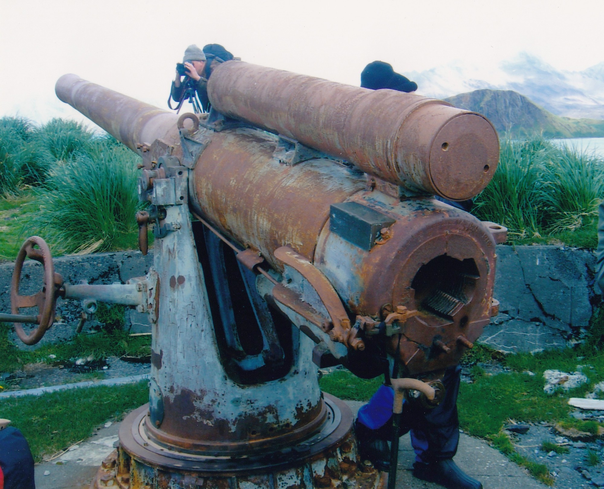 Denne kanonen står på "Hansens Point" på Syd Georgia. Den ble satt opp for å beskytte hvalstasjonen på Leith Harbor. Noen opplysninger sier at den ble satt opp under første verdenskrig, andre nevner andre verdenskrig.